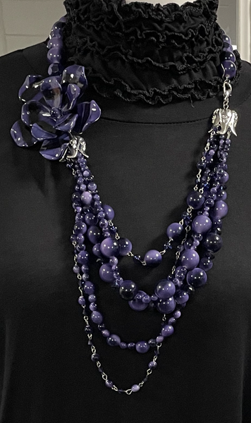 Statement Bold Heavy weight 5 strand purple & violet necklace, premium quality makes a big statement for any occasion with a very expensive look ~ with the added flower detail and fastener which should be worn to the side ~ Great for a cruise or special occasion when something dramatic is needed!